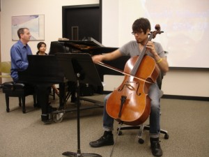 My cellist friend Abraham Aragundi invited me to perform with him the first movement of Beethoven’s Cello and Piano Sonata in G Minor, Op. 5, No. 2 for his music history class at Foothill College. This particular sonata was composed by Beethoven in Berlin at the age of 26. It’s a challenging piece to play and the interaction of the instruments is very exciting. It was great fun working up the sonata with such a talented and inspiring musician such as Abraham. A special thanks to Dr. Robert Hartwell for inviting us into his classroom!